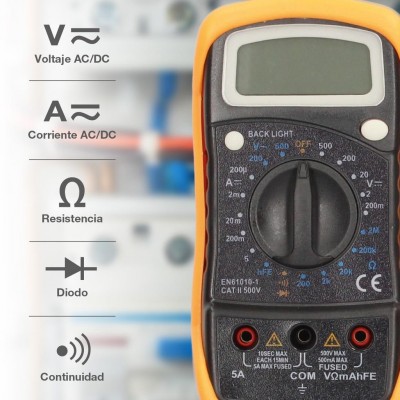 · FUNCIONES: Test de voltaje, corriente, resistencia, diodo y continuidad.