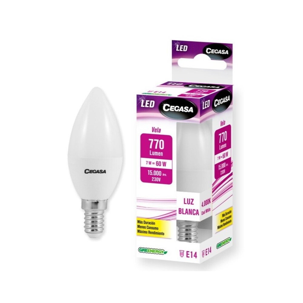 BOMBILLA LED VELA E14 7W BLANCA 4000K 770LM CEGASA